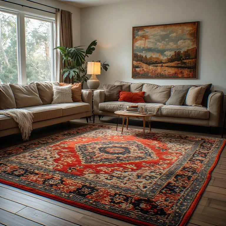 A rug grounds the living room and brings everything together. It also adds warmth and comfort.