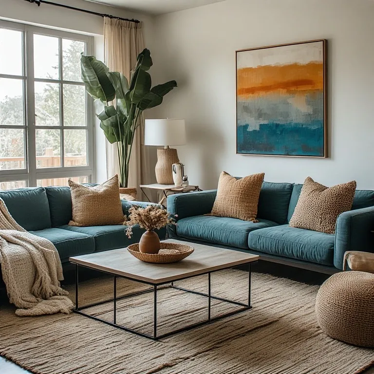 Combine soft cushions, woven throws, smooth tables, and metal accents. This mix keeps the room interesting while still simple.