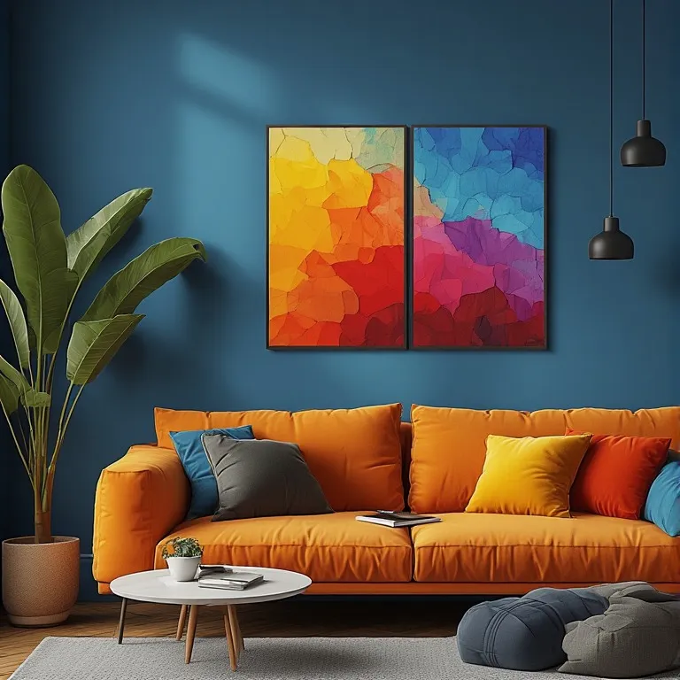 Wall art adds personality and completes the look of a living room. Modern art is often bold but simple.