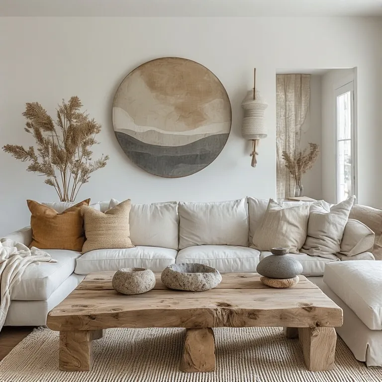 Wood tables, stone decor, and linen fabrics bring a soft and natural feel that pairs well with modern design.