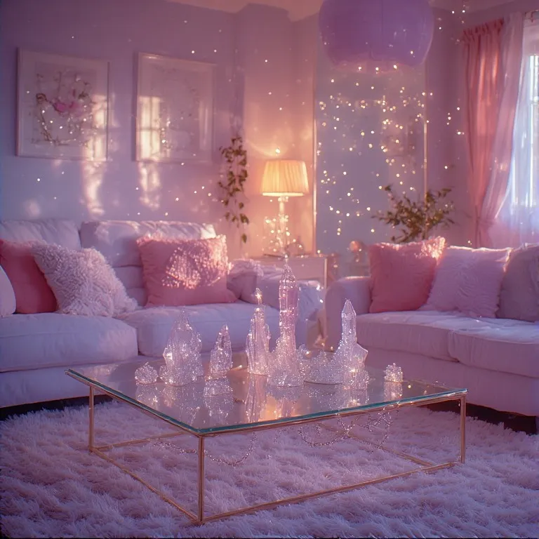 Want extra sparkle? Add crystal or glass decor. Glass coffee tables, crystal candle holders, or small decorative crystals can reflect light softly.