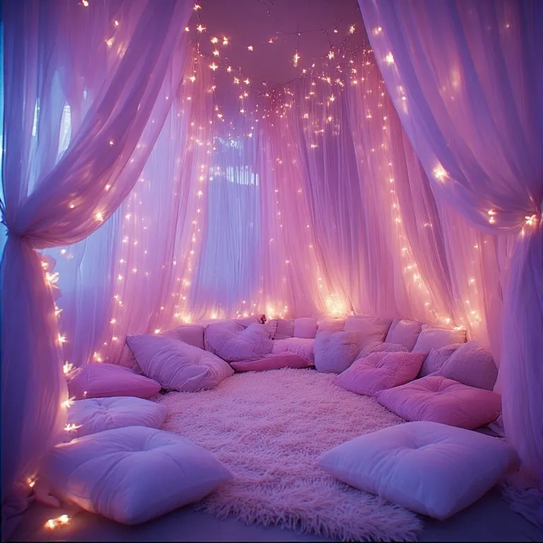 Imagine soft fabric hanging from the ceiling like a canopy. This theme feels like a secret fairy hideaway. Use light pastel fabric to create a soft draped effect.
