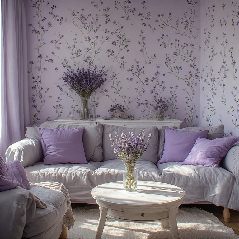 Lavender is calm and magical. It feels like twilight in a flower field. Paint one wall light purple or use lavender curtains. Add floral cushions and soft gray furniture. This theme works well with silver or white details. You can even add dried lavender in small vases.
