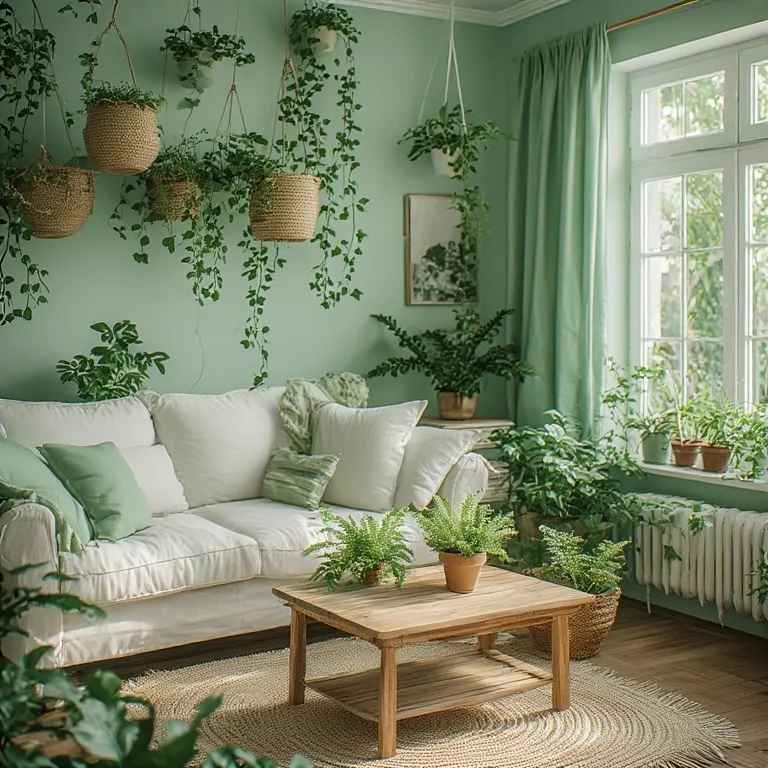 Mint green feels fresh and natural. It looks like soft leaves in spring. Pair mint green walls with white or cream furniture. Add lots of plants — real or fake. Ferns, ivy, and small potted flowers work best.