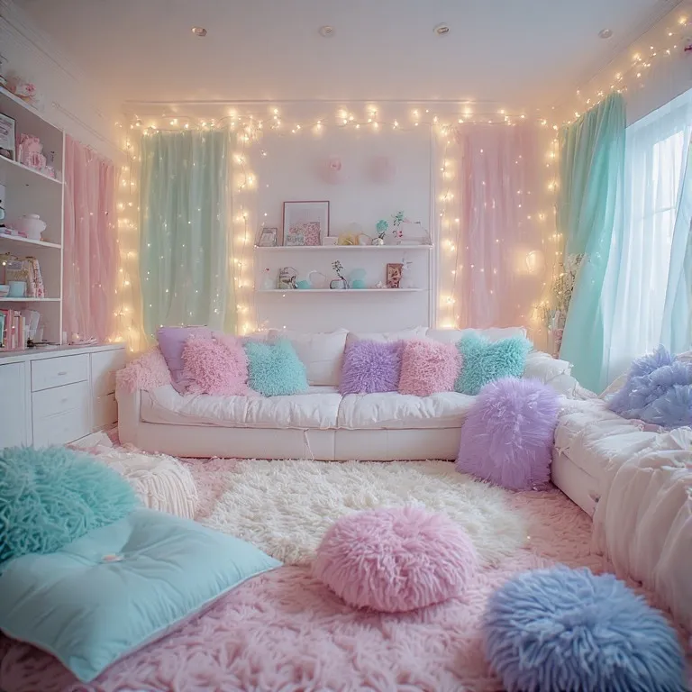 Use big floor pillows in pastel shades. Add soft rugs underneath. It makes the room feel warm and welcoming.