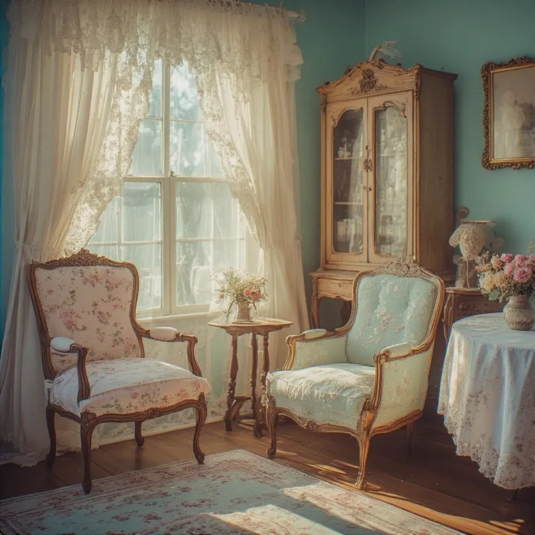 This theme feels like a storybook come to life. Use vintage-style furniture with curved legs and soft pastel upholstery. Add lace curtains and embroidered tablecloths.