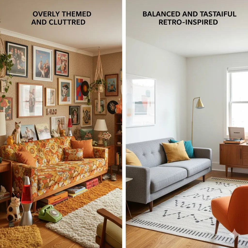 Keep a balance—use modern furniture with retro accessories or vice versa. Avoid crowding the room with too many vintage items.