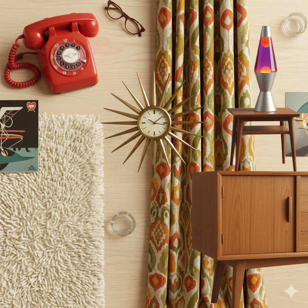 Wood, chrome, glass, and vinyl are signature retro materials. Mixing these materials creates balance and depth. For a cozy vibe, include soft fabrics like velvet, wool, and cotton in your cushions and rugs.