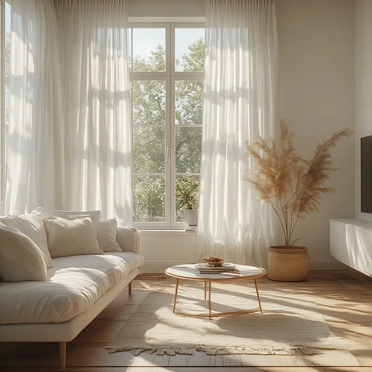 Curtains affect how a room feels. Light fabrics like cotton or linen are perfect for a clean look. They allow light to pass through and keep the space bright.
