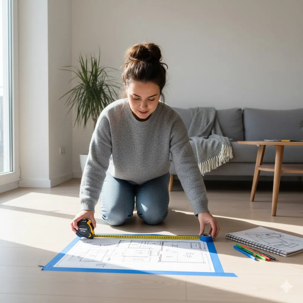 Before moving heavy pieces, mark the footprints right on the floor. Tape the sofa length and depth, the rug outline, and the coffee table circle or rectangle. Live with this “ghost furniture” for a day. Can you pass behind the sofa easily? Do doors open fully? Does the TV distance feel right? Adjust the tape until walking feels natural. Then move the real items. It’s the cheapest, easiest way to avoid dents, scrapes, and regrets.