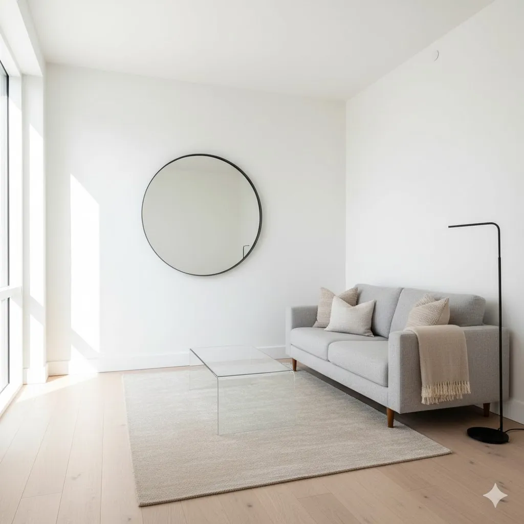 Mirrors bounce daylight and make rooms feel twice as deep. Place one opposite a window or near a lamp to spread glow. Frame choices matter: black for a crisp line, wood for warmth, brass for soft luxe. Glass tables and acrylic stools “vanish,” giving you function with almost no visual weight. If you need doors on storage, try reeded glass that blurs clutter but keeps the cabinet light. Aim mirrors at pretty views—plants, art, or tidy shelves—so what they reflect adds to the calm.