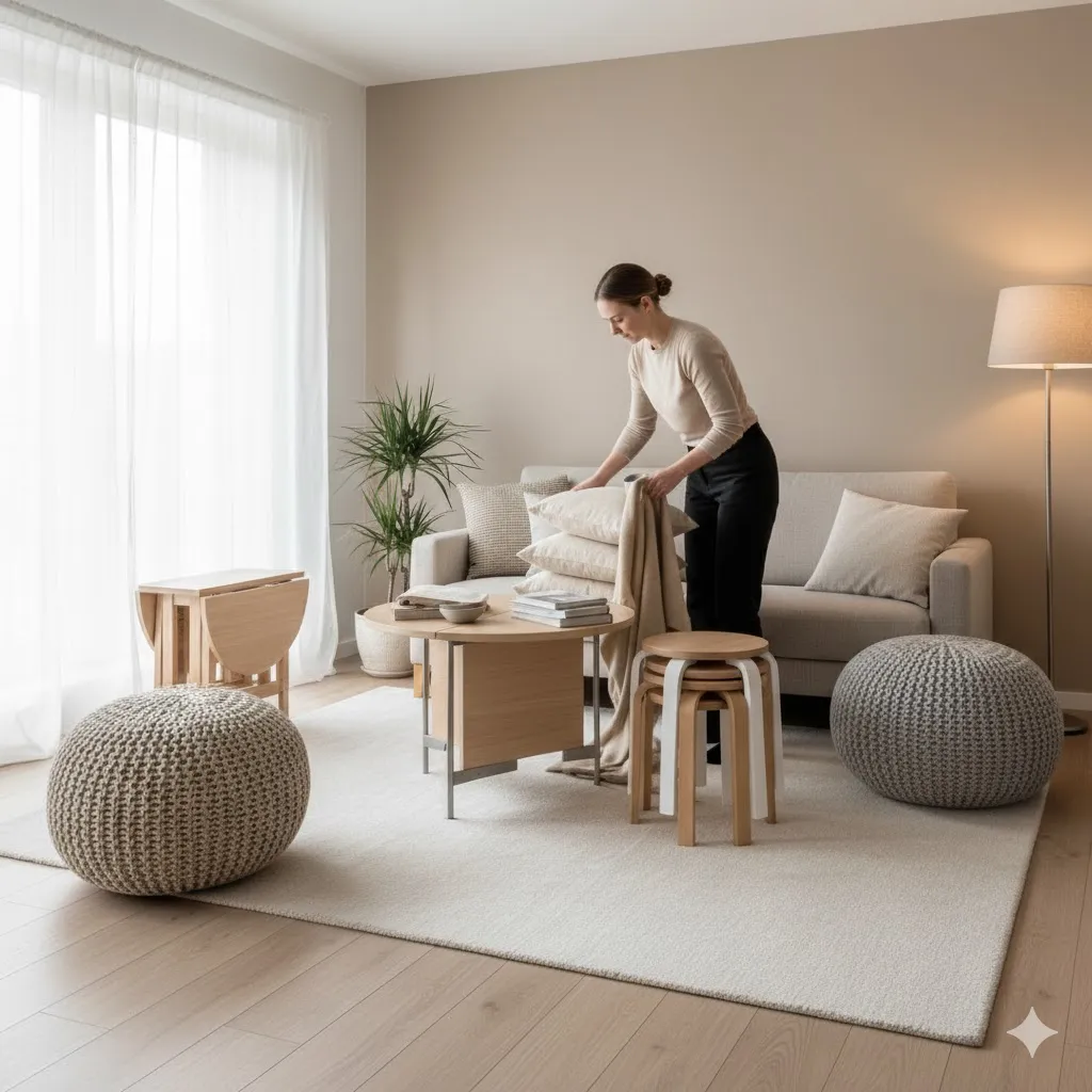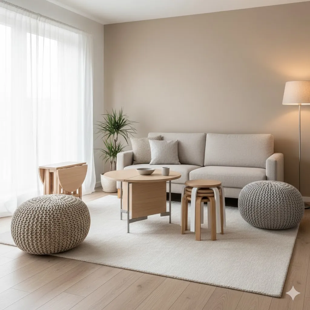 14) Add Flexible Extras: Stools, Poufs, and Foldables