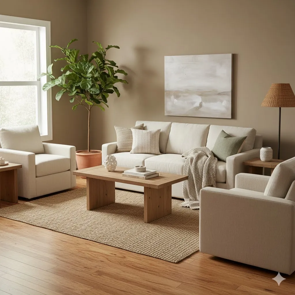 Write two short lists. Must-haves might be seating for three, a TV spot, a reading lamp, and a surface for drinks. Nice-to-haves could be a display shelf, a second chair, or a plant corner. Place must-haves on your plan first, keeping at least 75–90 cm for main routes. Small Living Room Layout Ideas . If it’s too tight, downsize shapes: pick a 170–190 cm sofa instead of a 220 cm one, or swap a deep armchair for a slim slipper chair. Once the anchors fit, see where nice-to-haves can slide in without crowding. This keeps the room calm and helps you buy only what actually works.