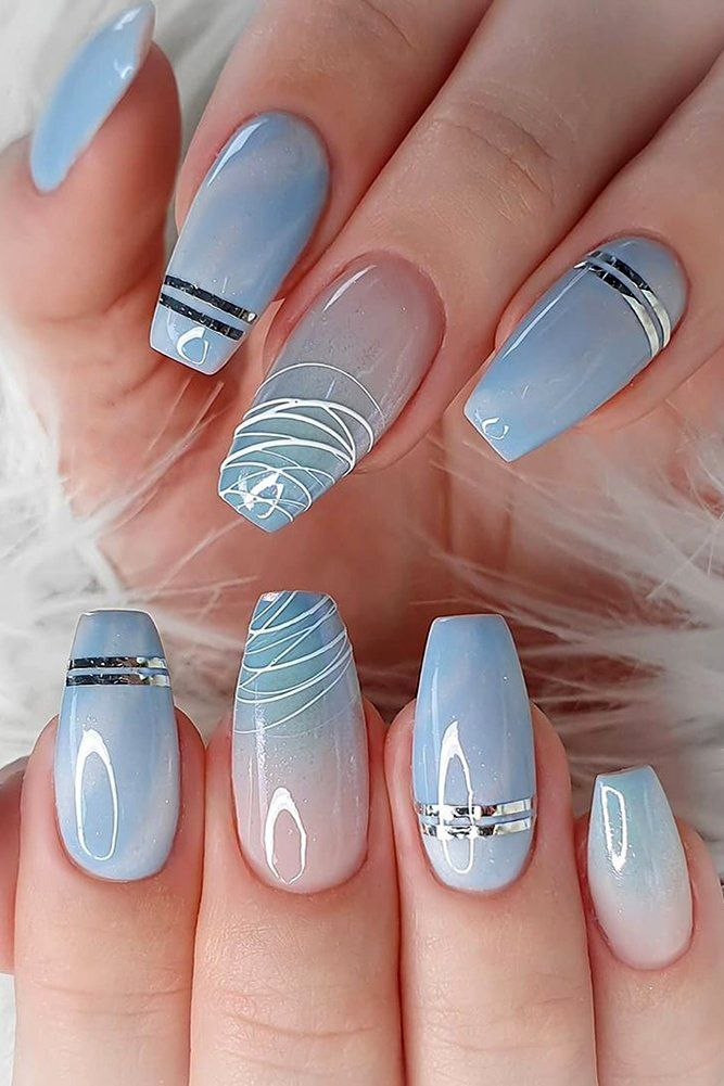 Ombre nails meet stripes in this hybrid style. Imagine a gradient background topped with delicate stripes in either metallic or contrasting shades. The layered effect is complex, artistic, and incredibly photogenic—perfect for Instagram moments.