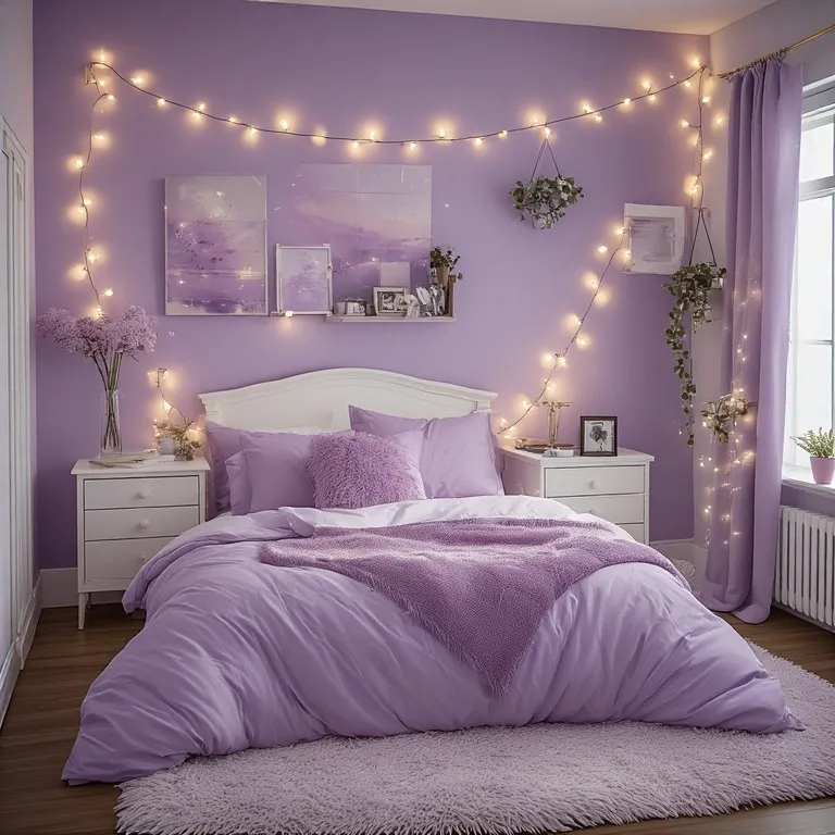 Lavender and white feel dreamy and soft. This combo makes your room look bright and clean. It is perfect for relaxing and studying.