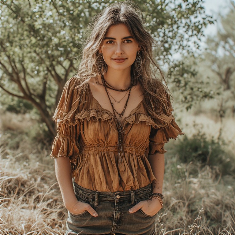 Boho designs are relaxed and free-spirited. With ruffles, they look even more stylish. Perfect for vacations and casual days.