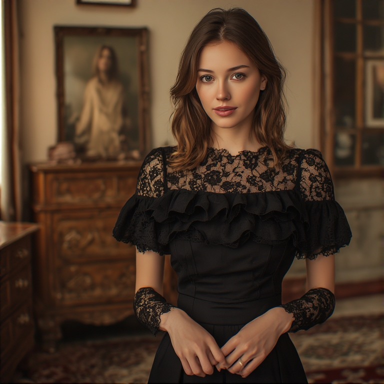 Lace adds elegance and beauty. Combine it with ruffles, and you get a classy look. Perfect for evening wear.