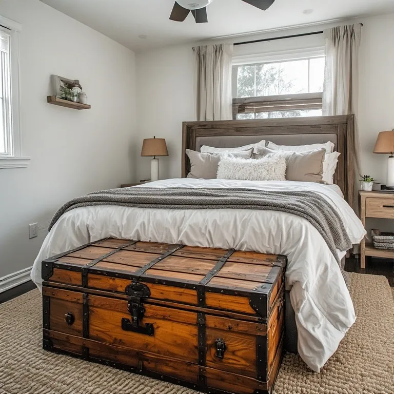 The trunk adds instant vintage charm. Its worn wood or leather surface tells a story. Pair it with modern bedding and simple decor.