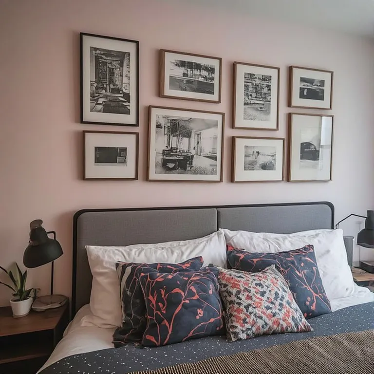 Start with a metal bed frame or black iron lighting. Add a wooden dresser or vintage side table. If you have exposed brick walls, that’s even better. Brick adds natural texture and character.