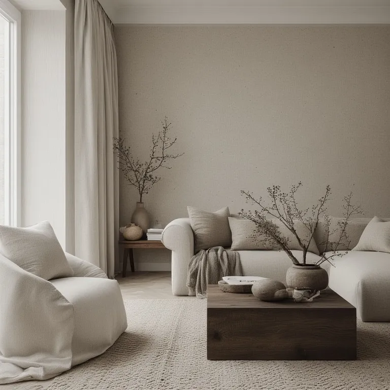 Sometimes the best trend is quiet. Neutral wallpapers with soft texture — linen weaves, tiny ribs, or soft speckles — make living rooms feel warm and timeless. These papers act as a gentle backdrop that supports changing decor and colors.