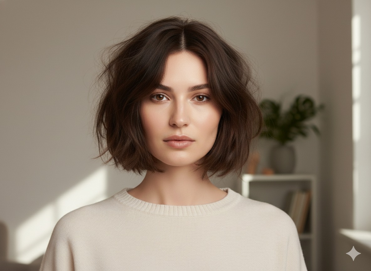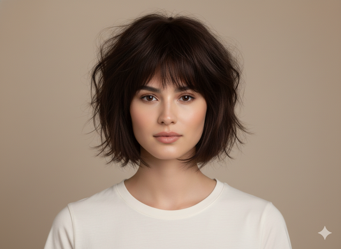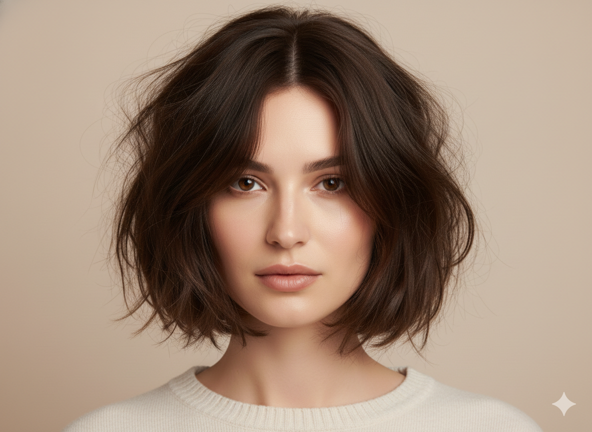 A messy, tousled bob adds height and texture, making it ideal for casual everyday styling.