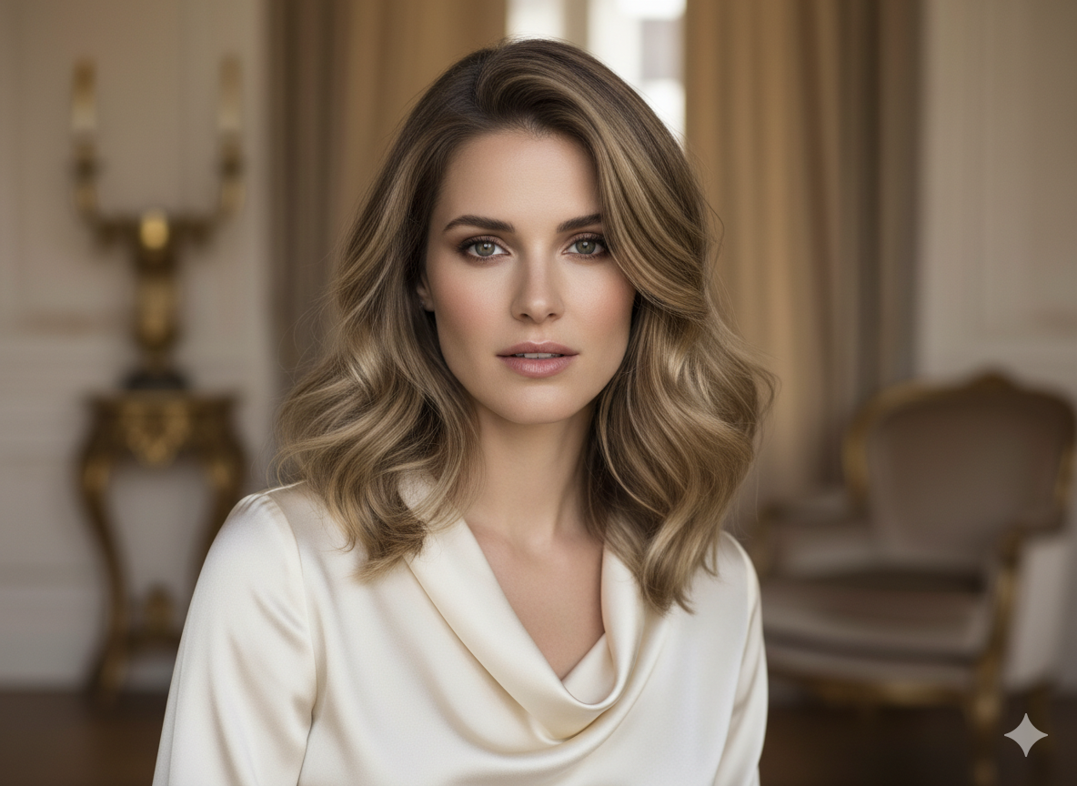 Gentle curls paired with soft highlights create a romantic and feminine look.