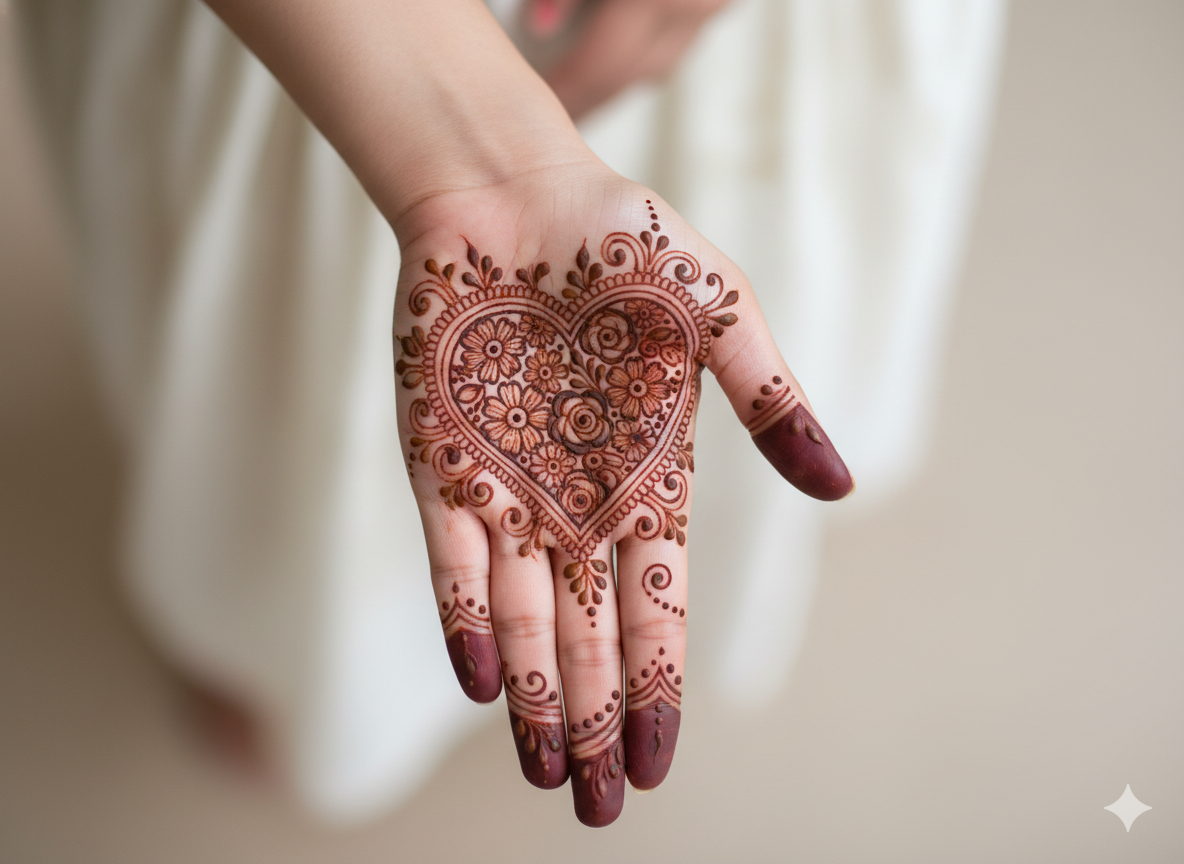 Floral heart henna designs on the palm beautifully combine emotion, artistry, and tradition. Whether it’s a simple classic heart, a cascading floral motif, or an intricate lace overlay, these designs capture the essence of elegance and creativity in 2026. They are perfect for weddings, festivals, casual adornment, or even as a form of self-expression.