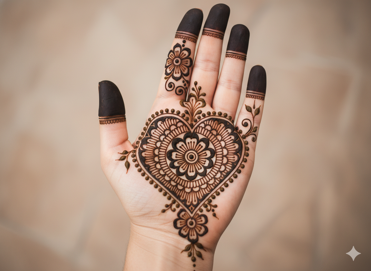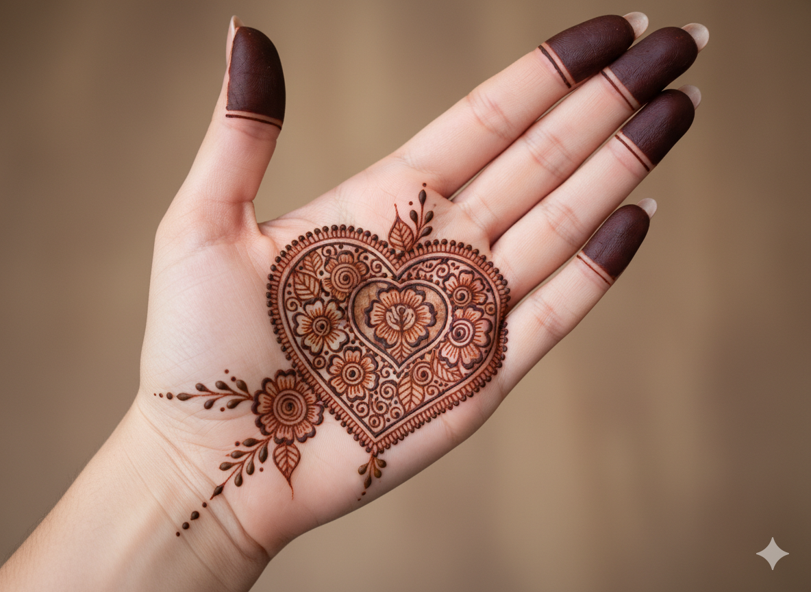 - Heart Shape: The focal point of the design, often positioned at the center of the palm.