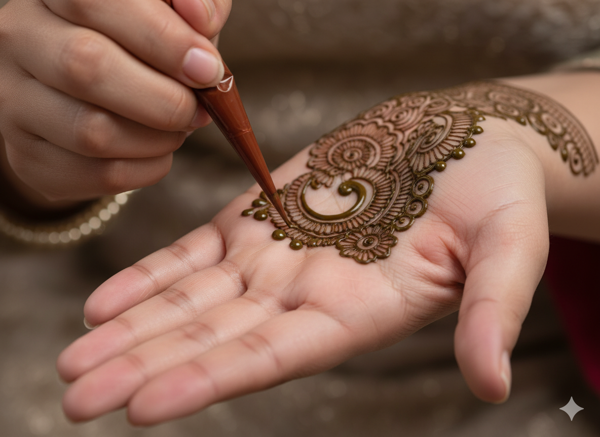 - Avoid water initially: Keep the mehndi paste on skin for at least 6–8 hours for deep, long-lasting color.