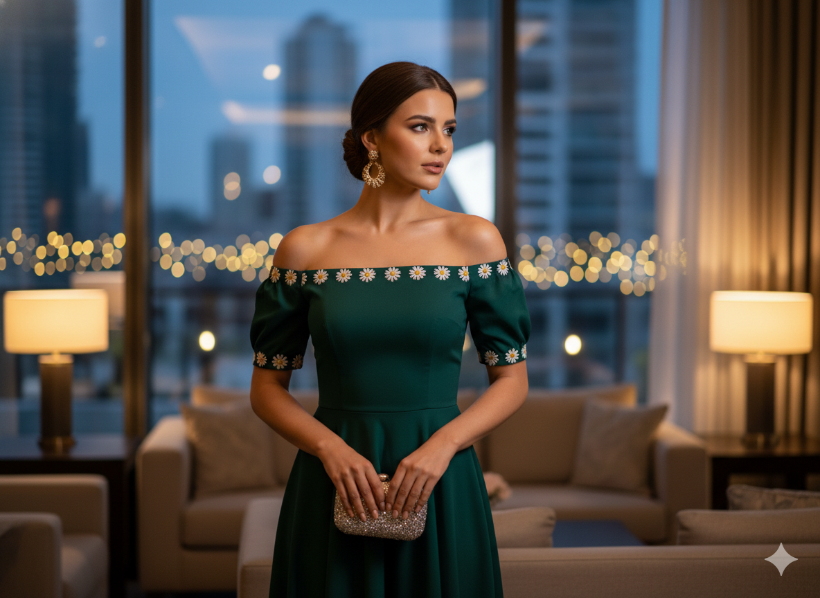 Daisy Dreams – Off-Shoulder Elegance is more than just a fashion trend—it is a celebration of softness, femininity, and timeless beauty. By combining the graceful silhouette of off-shoulder designs with the fresh charm of daisy-inspired details, this style creates a look that is both modern and romantic.