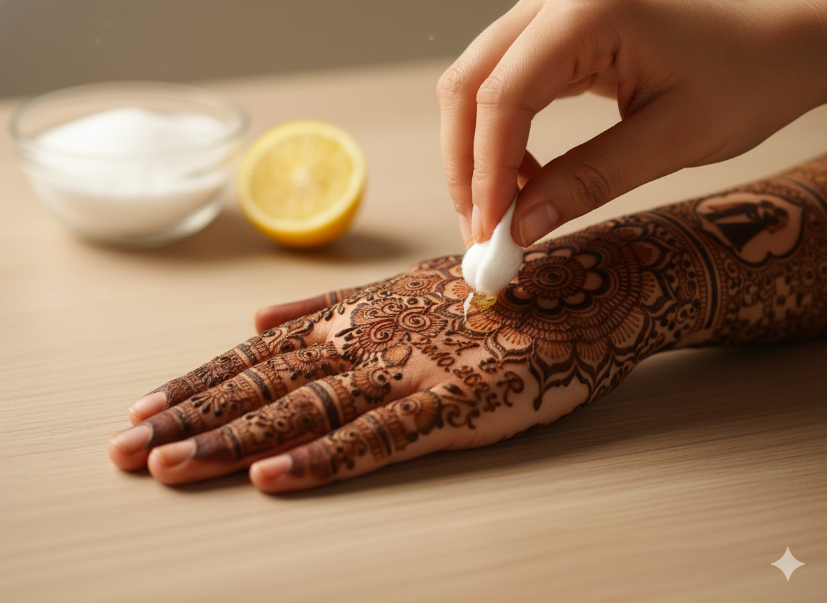 - Applying lotion before mehndi.