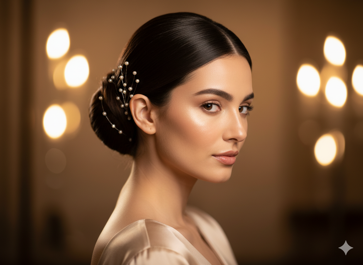 Modern brides want styles that feel comfortable yet visually stunning. This pearl wave hairstyle matches that requirement perfectly. It is suitable for Western bridal gowns, minimalist wedding dresses, and contemporary bridal outfits.