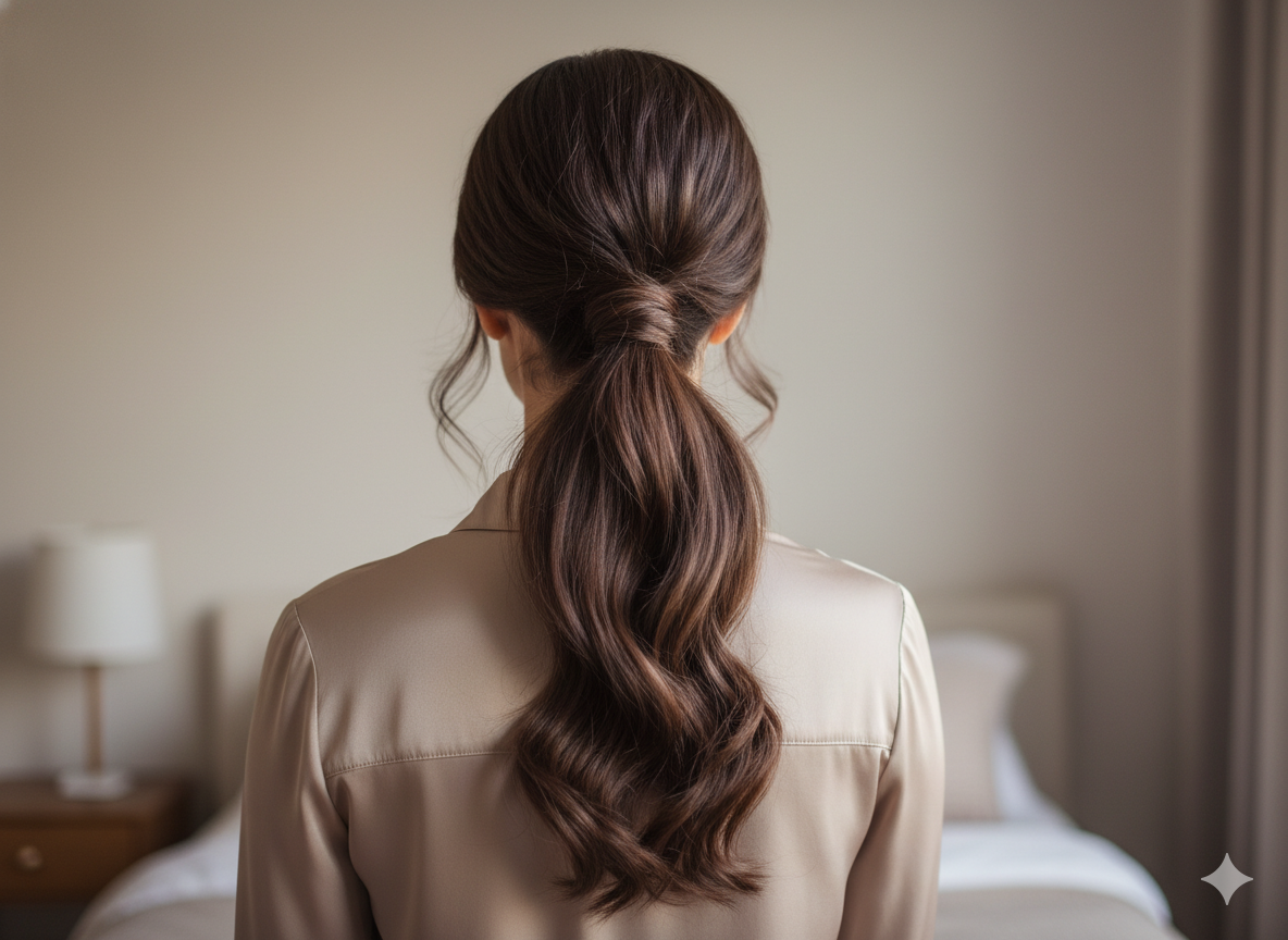 Unlike high ponytails that feel energetic and sporty, low ponytails sit gently at the nape of the neck. This placement creates: