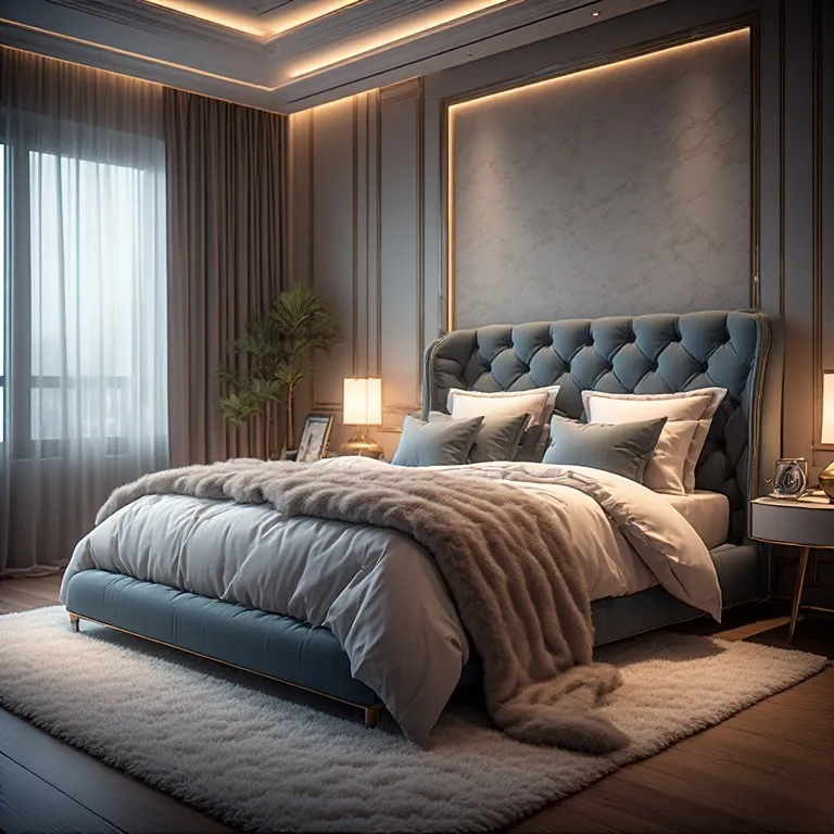 An upholstered headboard with velvet or soft fabric instantly adds richness. A tall headboard makes the room feel grand and stylish. You can also choose a four-poster or canopy bed if you want a royal look. These beds create drama and elegance. Even a modern bed frame with a bold design can make a big difference.