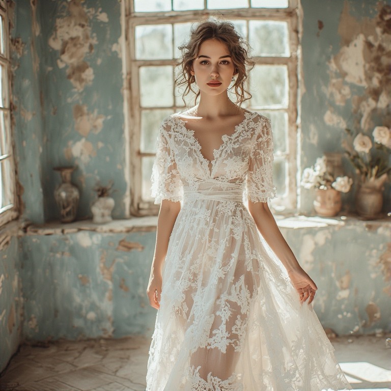 Lace adds a soft and delicate touch. A lace dress can look very rich if kept simple. Avoid heavy designs and go for light patterns.
