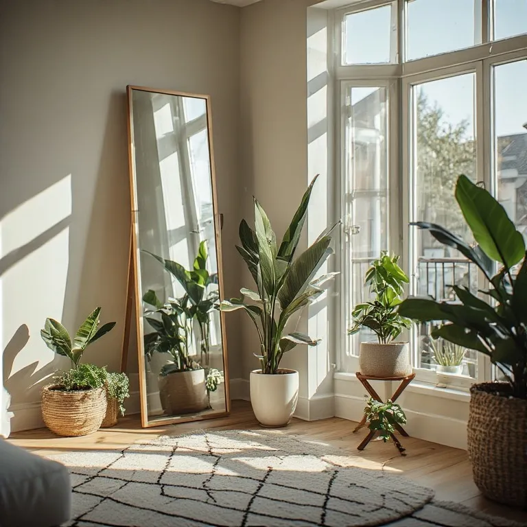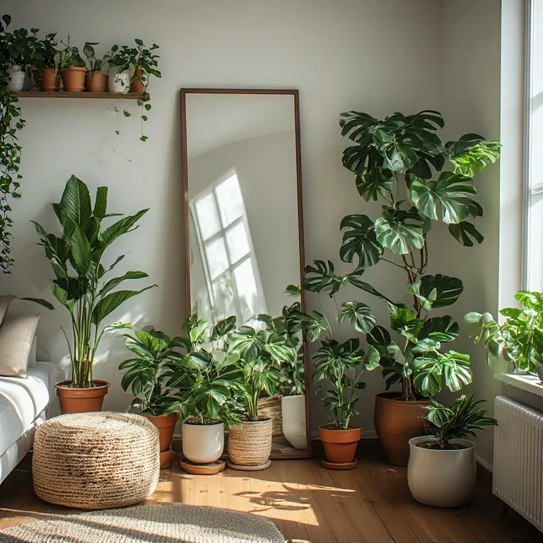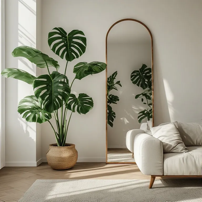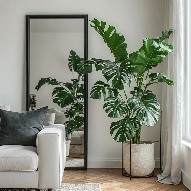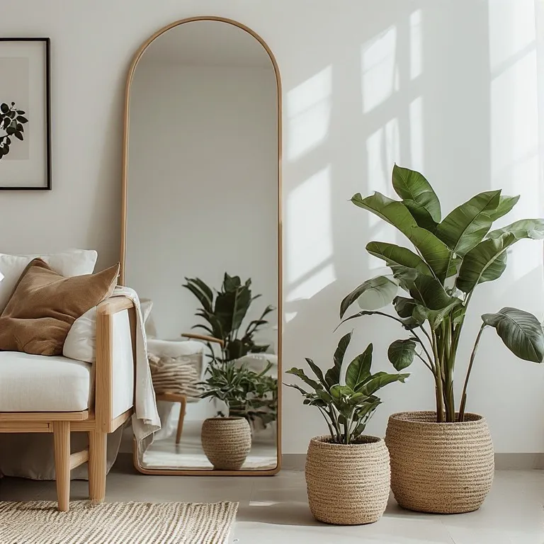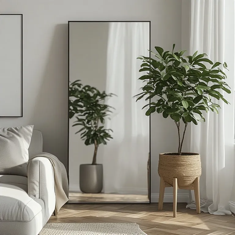 Now imagine placing a tall indoor plant next to that mirror. The reflection makes the plant look bigger and fuller, almost like a mini indoor jungle.