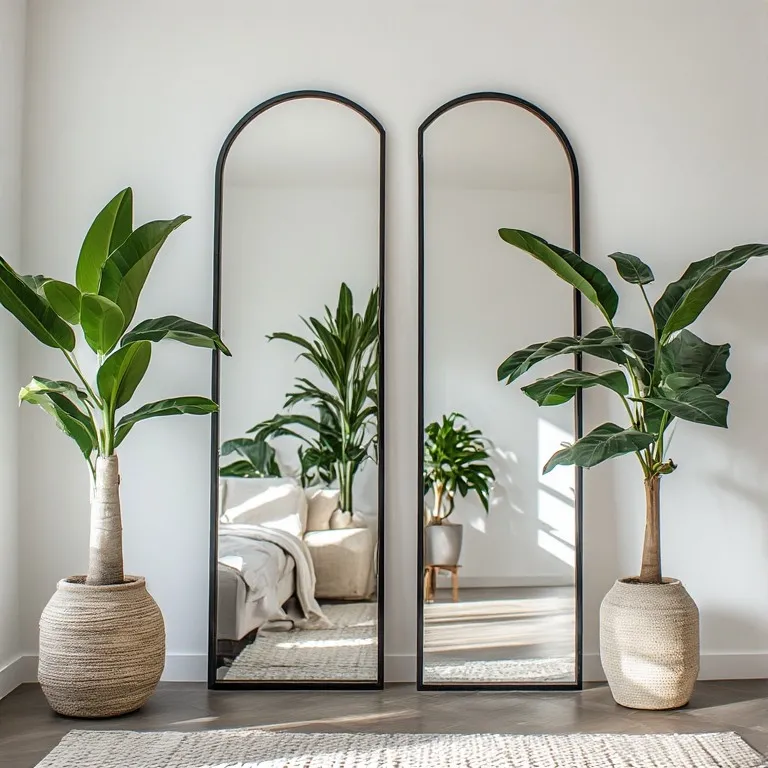 Idea #1 – Floor-Length Mirror with Tall Indoor Plants