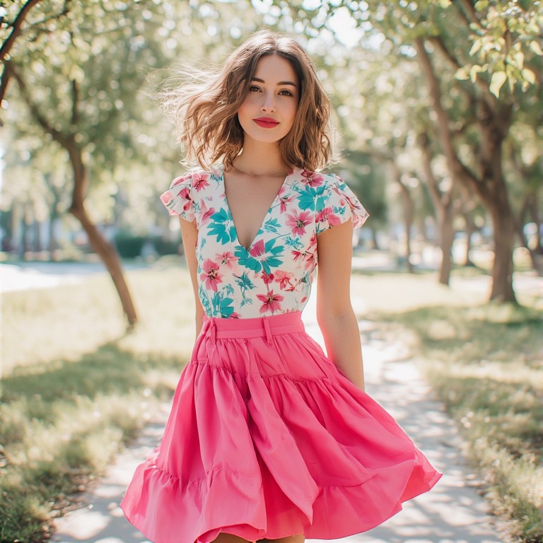 Outfit Idea 13: Bright Pink Skirt Combo