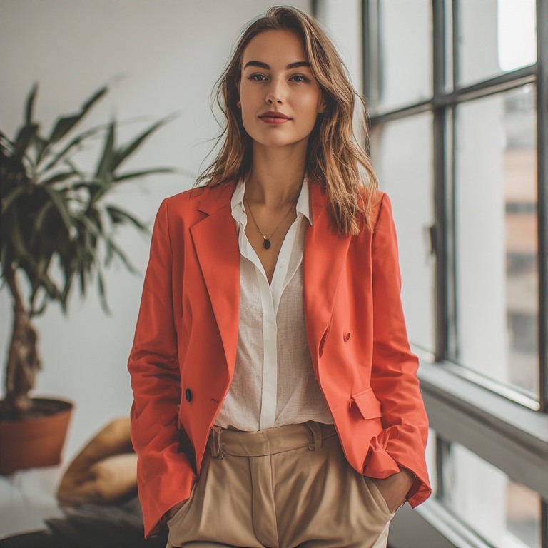 Outfit Idea 12: Coral Blazer Look