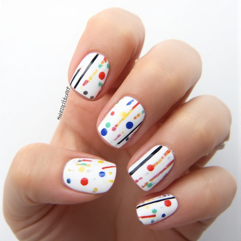 White nails are classic, but adding bright accents like dots or lines makes them trendy and unique. It is simple but stylish.