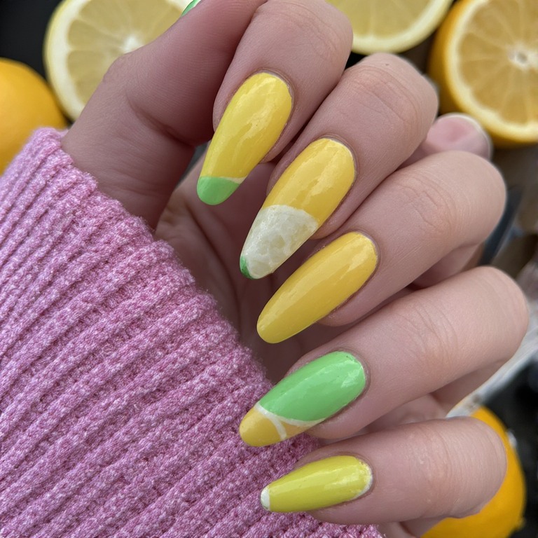 Why choose one color when you can have both? Lemon lime shades are fresh, fun, and super eye catching. They bring a zesty look to your nails.