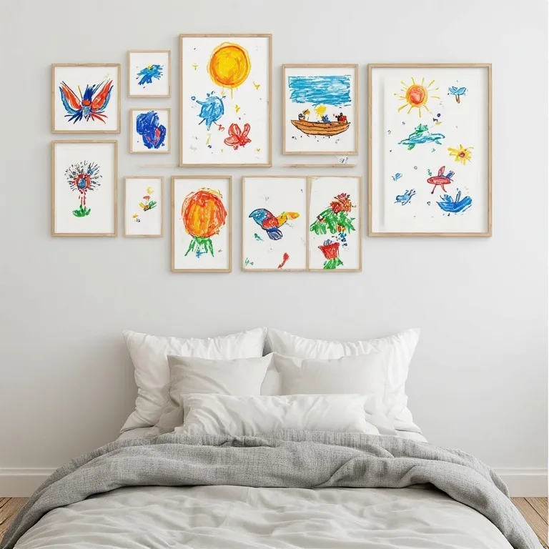 Nothing feels more special than art made by your child. Frame their drawings or paintings and hang them on the wall. It’s free, personal, and meaningful. Kids feel proud seeing their art displayed. It also adds color and personality to the room.