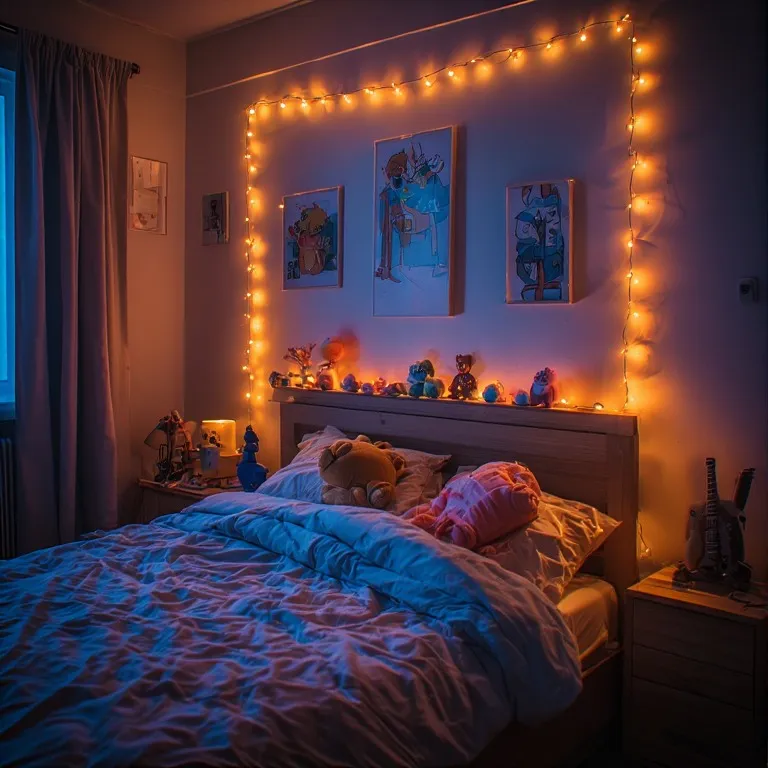String lights add magic to kids rooms. They are soft, warm, and comforting. Hang them along a wall or bed frame. They create a cozy feeling, especially at night, and make the room feel special.