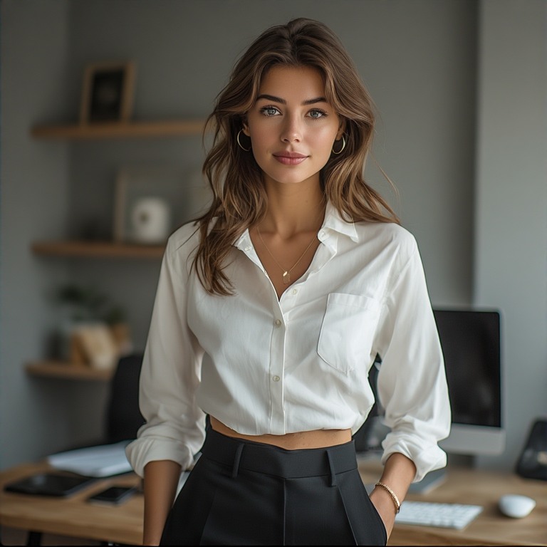 The classic white button down shirt is timeless. Pair it with tailored trousers, and you have a clean and professional look. It works for meetings, presentations, or even casual Fridays.