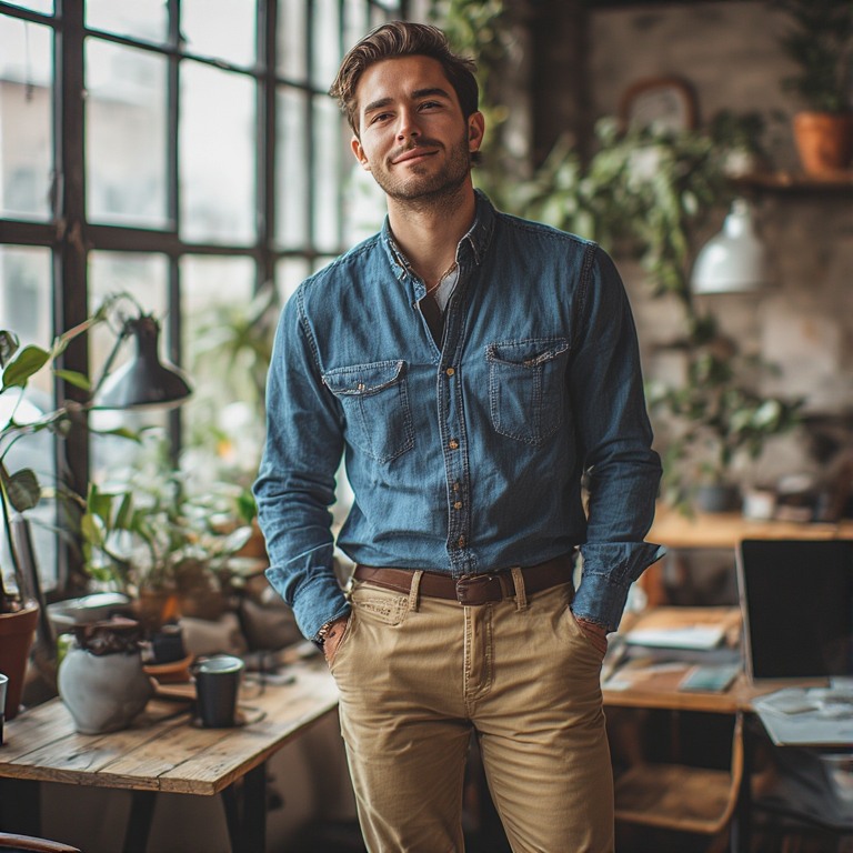 This combo is relaxed but still professional. Perfect for casual offices.