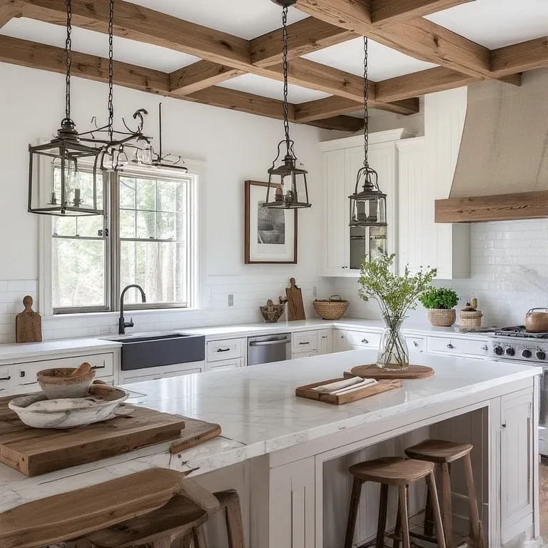 Flooring plays a big role in setting the farmhouse tone. Wood floors, stone tiles, or rustic planks make your kitchen feel authentic. Choose colors that match your cabinets and décor.