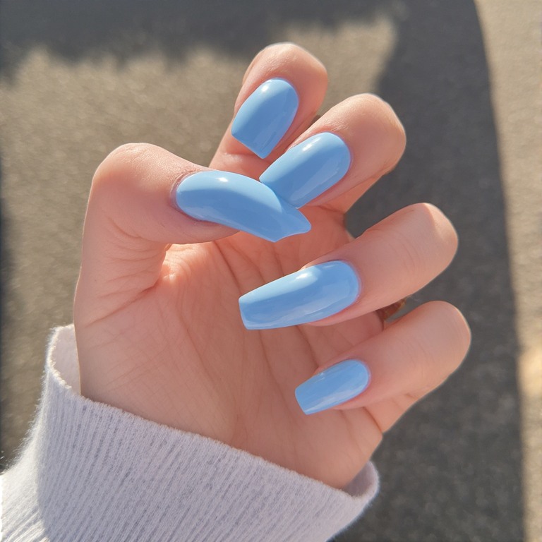 7. Baby Blue Gloss Coffin Nails