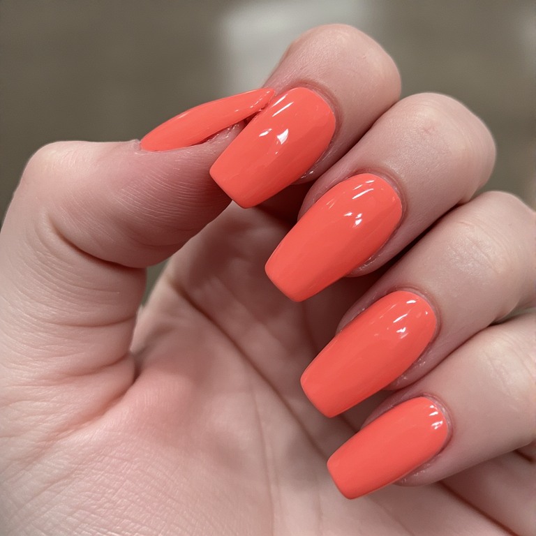 13. Glossy Coral Minimal Nails
