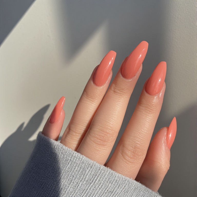 6. Glossy Peach Minimal Nails