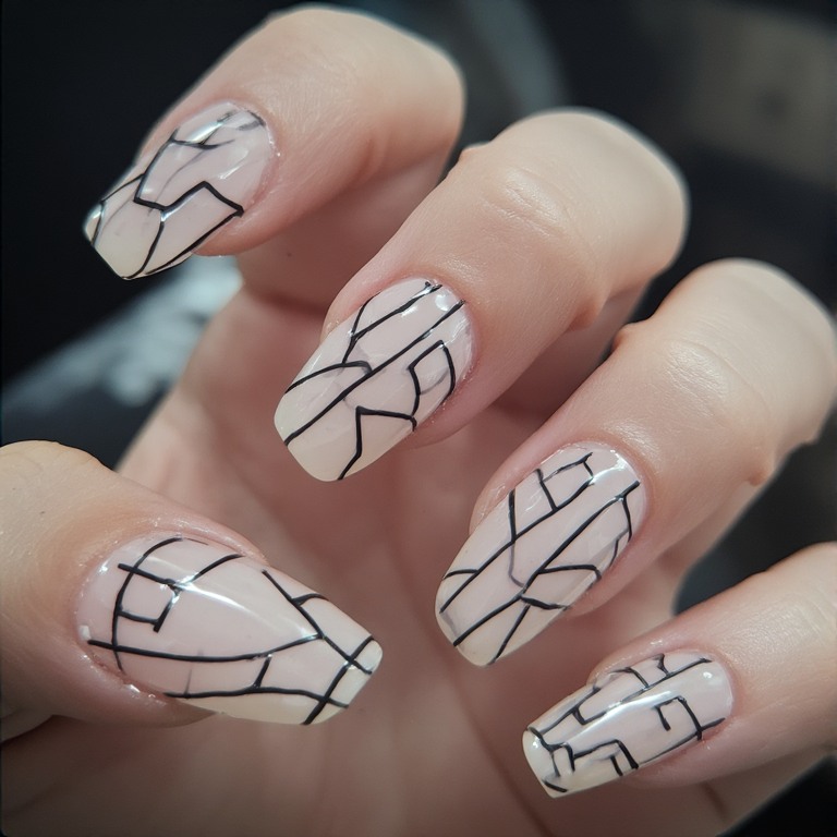10. Transparent Nails with Line Art